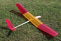 Před lety jsem si postavil malého elektro větroně na speed 400. Laminátový trup a lehké balzové křídlo potažené transparentní folií a motýlkové ocasní plochy. Dokonce jsem ho i zalétal s původním pohonem, ale pro problémy s přijímačem MZK Pico 7 jsem jej odložil. Mezitím jsem postravil další modely a na tento model jsem zapoměl. Při letošním stěhování dílny jsem ho opět objevil a rozhodl jsem se ho znovu zprovoznit. Jako pohon jsem použil levný AC motor a regulátor z Himodel.com Dosud bezejmený model pojmenoval syn, po té co jsem mu vysvětloval pro něj neobvyklé ocasní plochy. 10. 6. 2008 - dorazil pohon z himodelu, tak jsem nelenil a model osadil RC soupravou a pohonem. Nabil dvoučlánek LiIonek a vyrazil na louku zalétávat. Zatím bez kuželu, protože jsem neměl žádný vhodný po ruce. Trošku foukalo, ale to mě neodradilo. Model létá bez problémů, jen je třeba doladit vyosení motoru a výchylky na motýlkových plochách. Nový AC motor je výrazně výkonější než původní speed 400.